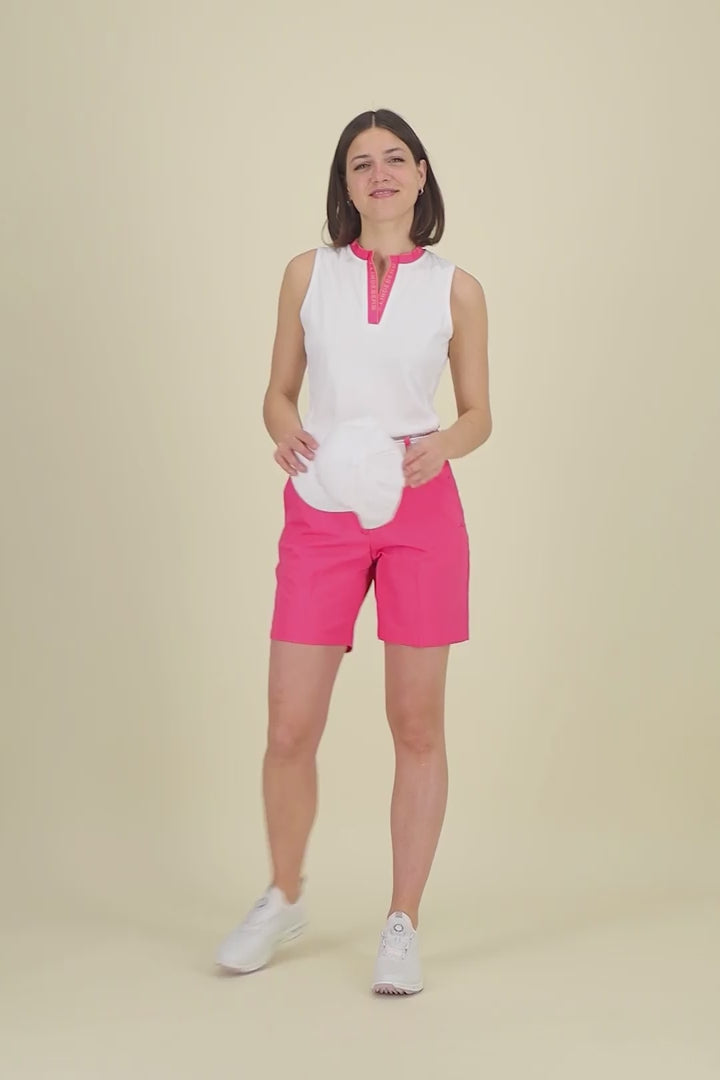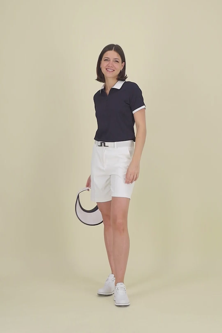 Diese J.Lindeberg Gwen Golfshorts sind mehr als nur ein Kleidungsstück – sie sind eine Performance-Steigerung für jede Golferin. Hergestellt aus einem fortschrittlichen Micro High Stretch-Gewebe, garantieren sie eine unvergleichliche Flexibilität, die jeden Schwung unterstützt. Das leichte Material fühlt sich kaum spürbar an und sorgt mit seiner Atmungsaktivität dafür, dass du auch unter Druck einen kühlen Kopf bewahrst. Die Shorts sind so konzipiert, dass sie dich bei jedem Wetter optimal unterstützen: Sie weisen Wasser ab und trocknen blitzschnell, damit du dich voll auf dein Spiel konzentrieren kannst. Die Mid-Rise-Taille bietet eine bequeme Passform und in den durchdacht platzierten Taschen finden alle kleinen Essentials Platz. Perfekt für die modebewusste Golferin, die höchste Ansprüche an Komfort, Performance und einen aktiven Lifestyle stellt.
